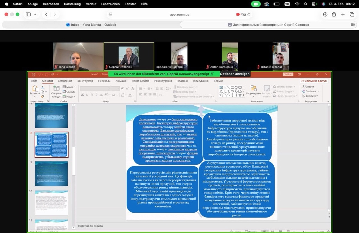 Завідувач кафедри підприємництва та бізнес-технологій, професор Сергій СОКОЛЮК провів лекцію для студентів-магістрантів освітньої програми "Торговельне підприємництво в аграрній сфері", де було розкрито актуальні питанням інфраструктури аграрного ринку.