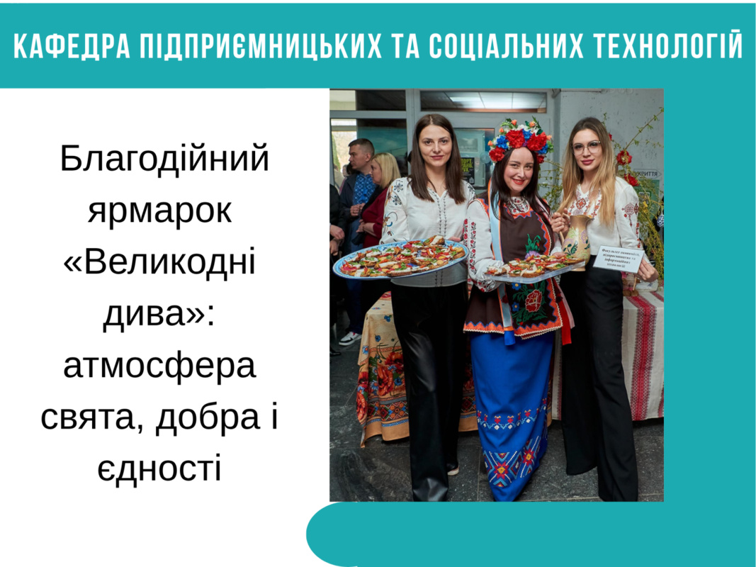 Викладачі кафедри підприємницьких та соціальних технологій також активно долучилися до ярмарку, представивши власні вироби та підтримавши благодійну ініціативу. Здобувачі вищої освіти не залишилися осторонь і взяли активну участь у заході, наповнивши його атмосферою молодіжної енергії, творчості та щирості. Особливу атмосферу створювали щирі посмішки, жваве спілкування та відчуття спільності. Учасники заходу вкотре довели: навіть маленький внесок може стати частиною великого добра.