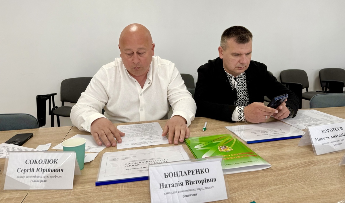 Вагомий внесок у проведення атестації здобувача здійснили представники кафедри підприємницьких та соціальних технологій. Зокрема, доктор економічних наук, професор СОКОЛЮК Сергій Юрійович очолив роботу разової спеціалізованої вченої ради, а кандидат економічних наук, доцент КОРОТЄЄВ Микола Анатолійович виступив рецензентом дисертаційного дослідження.