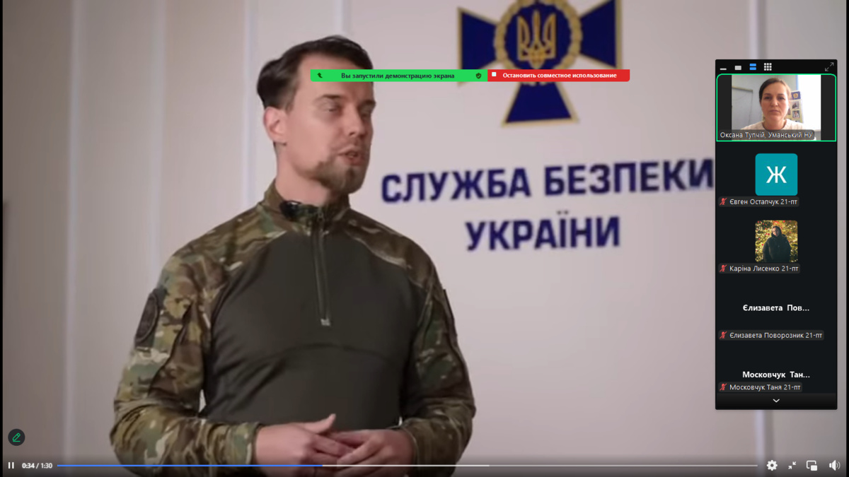 У ході виховної години учасники переглянули соціальний відеоролик, створений за участі відомого українського режисера Любомир Левицький. Відео демонструє реалістичний сценарій вербування неповнолітніх через інтернет та його наслідки. Після перегляду відбулося активне обговорення: здобувачі вищої освіти ділилися думками щодо психологічних методів впливу, які застосовують ворожі куратори, та шляхів уникнення небезпечних пропозицій «легкого заробітку».