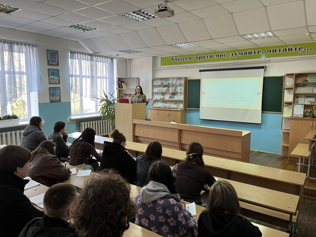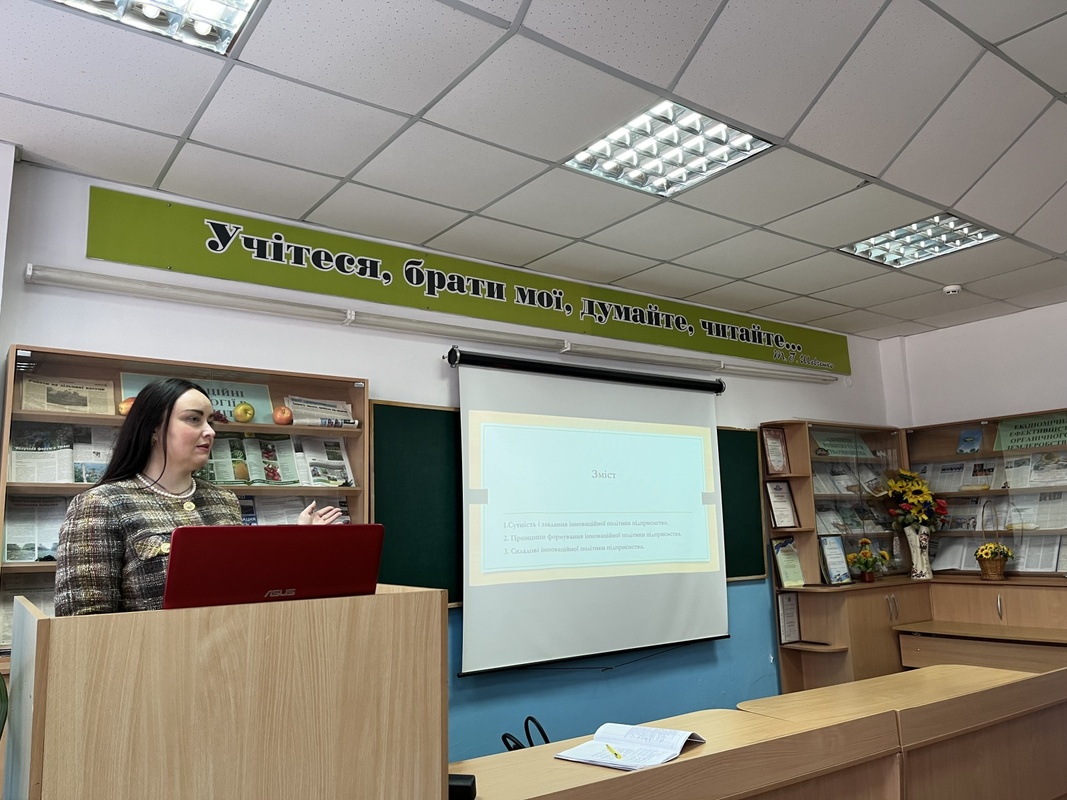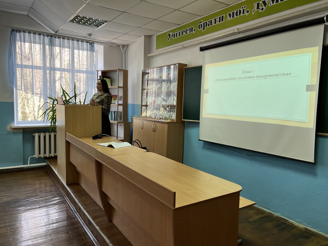 16 березня 2026 року для здобувачів вищої освіти факультету економіки і підприємництва УНУ груп Б2 о, ф, ма, пт, сз, було проведено лекційне заняття з дисципліни «Інноваційна діяльність в бізнесі» старшим викладачем кафедри підприємництва та бізнес-технологій Людмилою Володимирівною ПРИСЯЖНОЮ. Тема лекційного заняття: «Інноваційна політика підприємства», де було розкрито сутність, завдання, принципи формування та складові інноваційної політики підприємства. Лекцію супроводжував влучно підібраний різноманітний презентаційний матеріал, який включав матеріали із зазначеної тематики, що дозволило лекторові застосовувати прийоми розповіді, характеристики, пояснення, коментування і зберегти стійку увагу слухачів протягом всього заняття. Лекція мала характерний високий науковий рівень викладеної інформації, яка має світоглядне значення, охоплювала значний обсяг систематизованої й методично опрацьованої сучасної наукової інформації.
