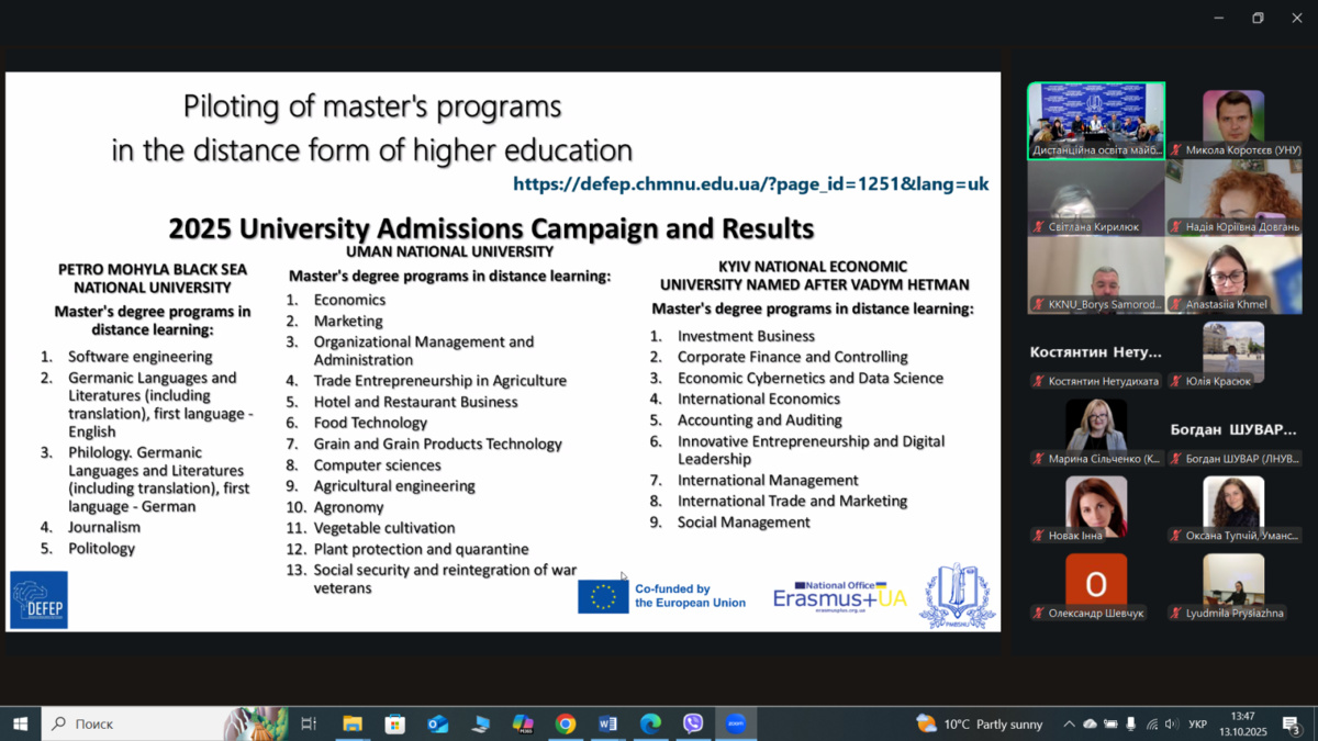 З 13 по 16 жовтня 2025 року науково-педагогічні працівники кафедри підприємництва та бізнес-технологій взяли участь у Міжнародній науково-практичній конференції «Дистанційна освіта майбутнього: досвід проєкту DEFEP і сталий розвиток».