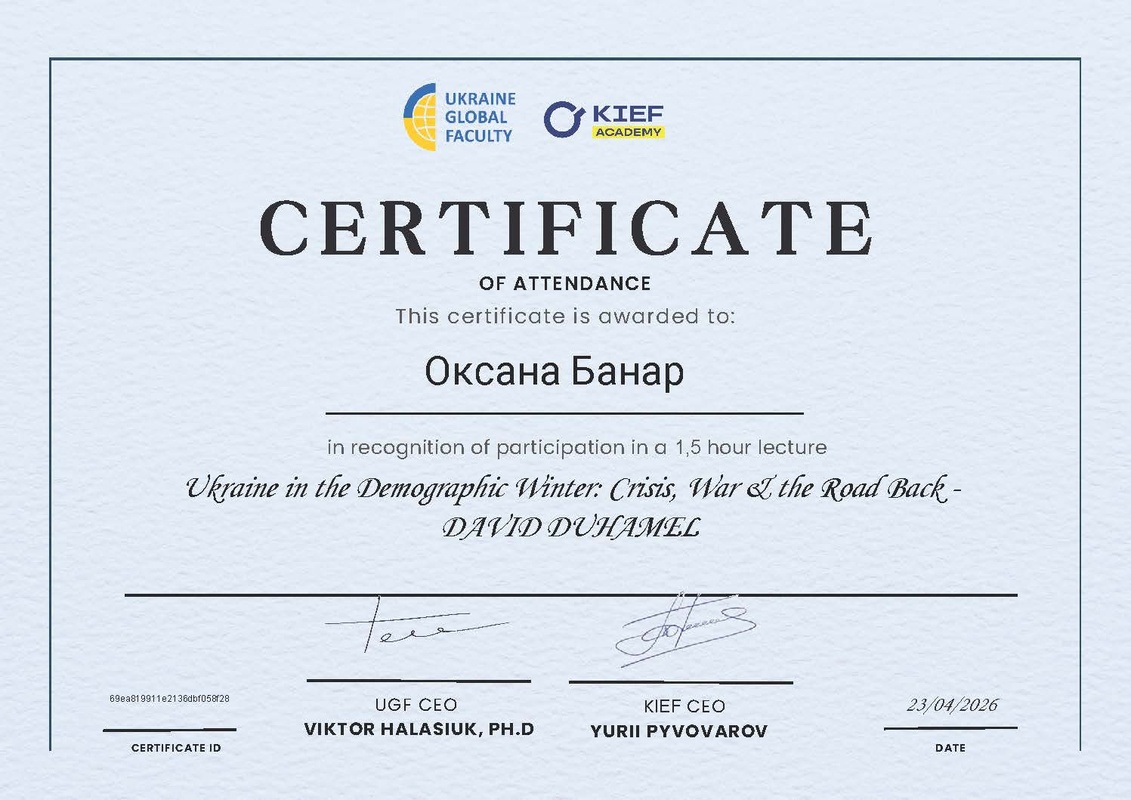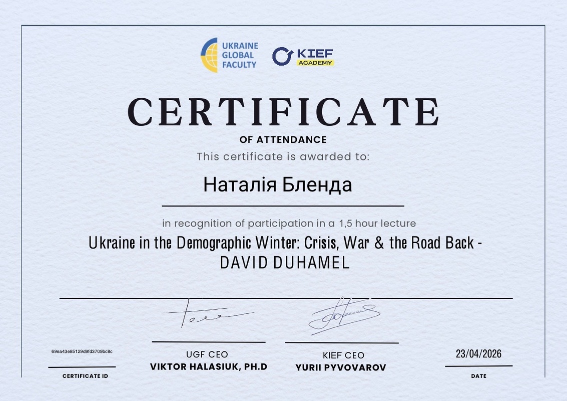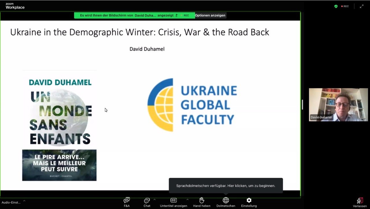 У межах заходу було розглянуто одну з найгостріших проблем сьогодення — демографічну кризу України в умовах війни та глобальних трансформацій. Професор Давід Дюамель представив ґрунтовний аналіз сучасних демографічних тенденцій, окресливши їхній вплив на економічний розвиток, ринок праці та соціальну політику держави.