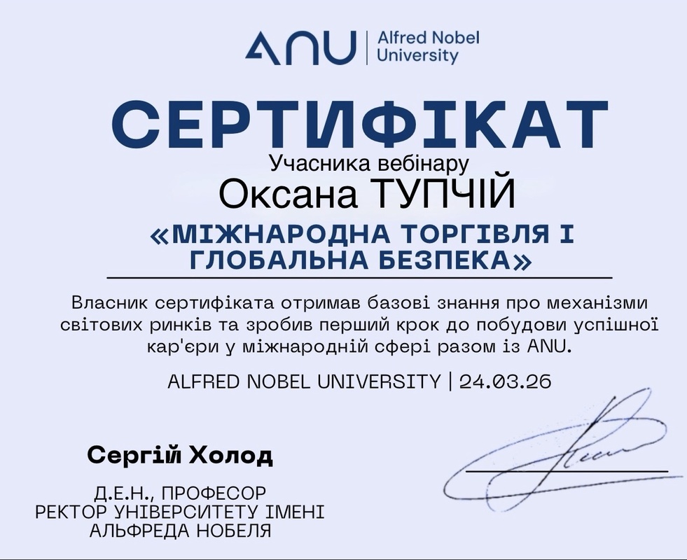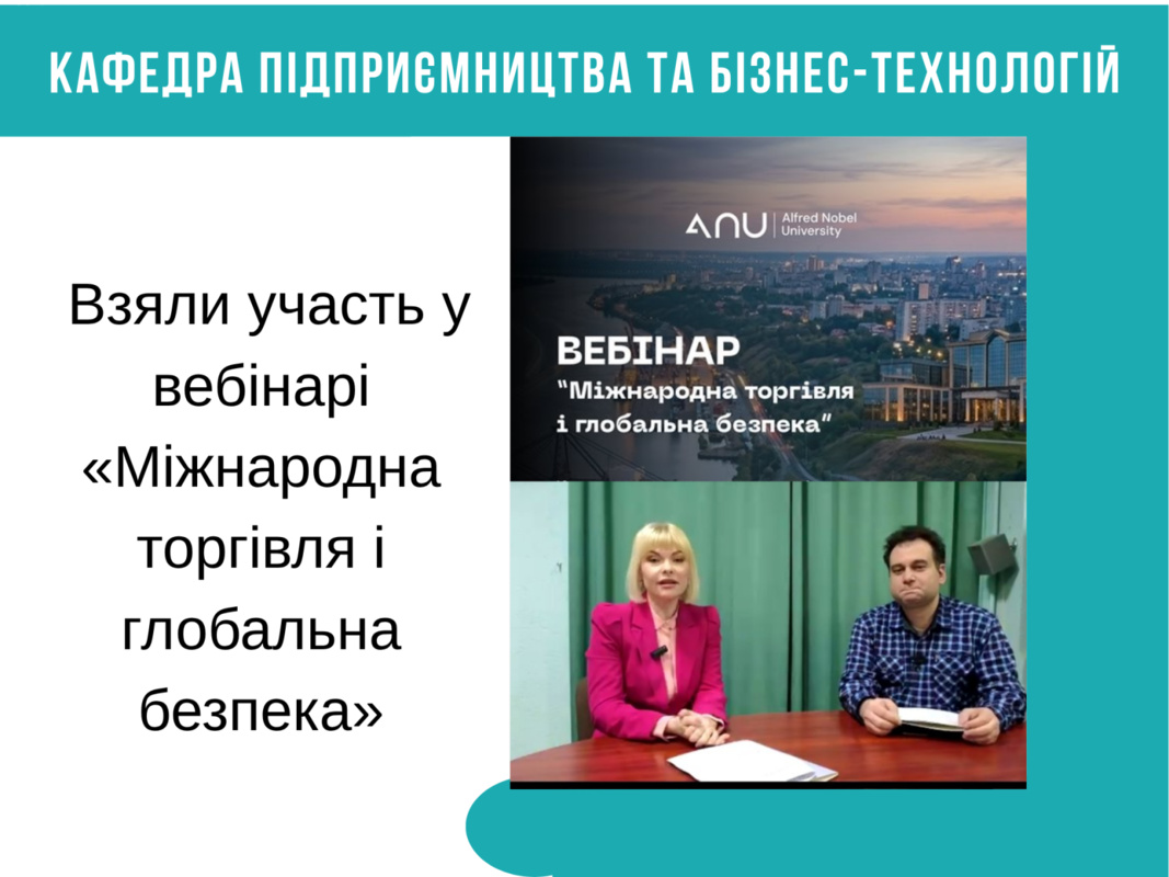 Викладачі кафедри підприємництва та бізнес-технологій Уманського національного університету долучилися до онлайн-вебінару на тему «Міжнародна торгівля і глобальна безпека».