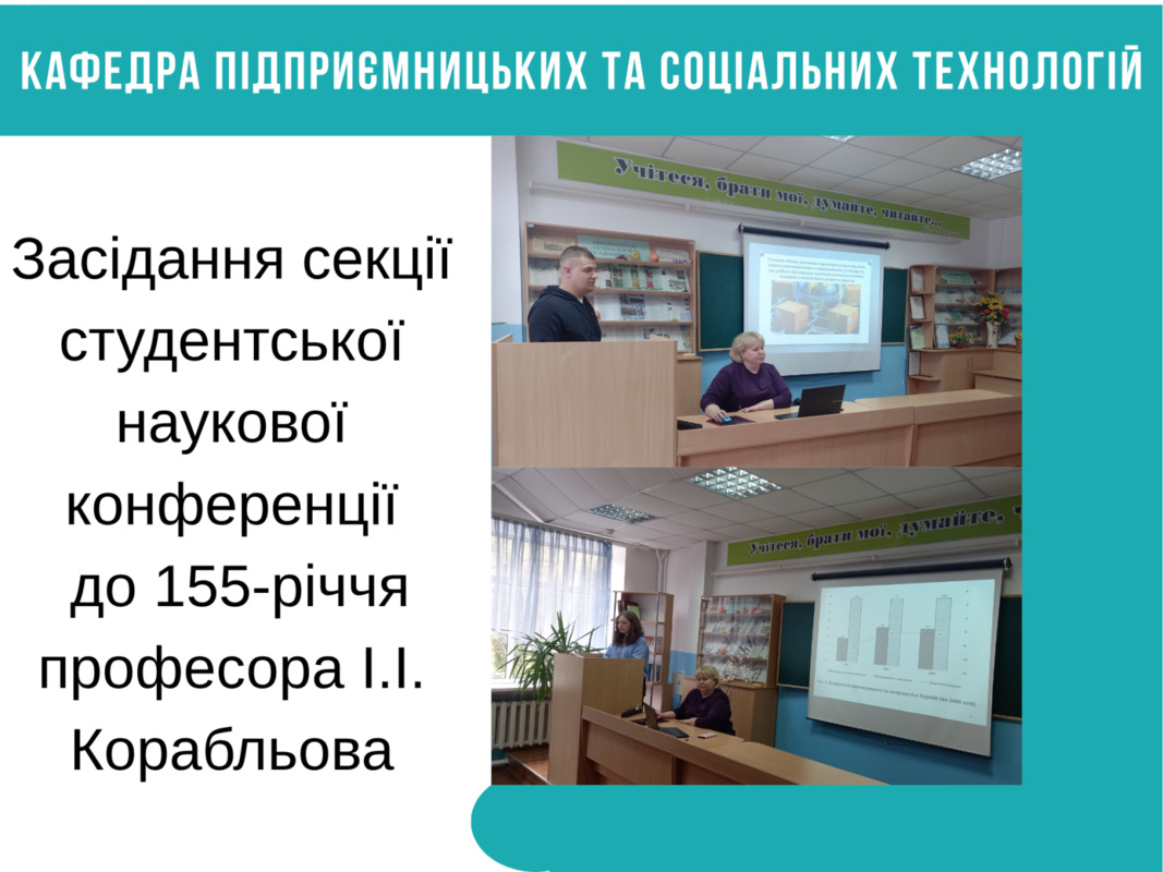Засідання секції студентської наукової конференції кафедри підприємницьких та соціальних технологій, приуроченої 155-річчю від дня народження видатного вченого і педагога у галузі бджолярства і шовківництва, професора Іполита Івановича Корабльова